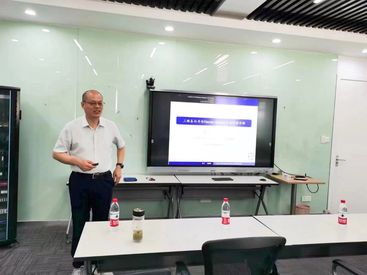 8月1日下午,由数学学科主办的数学大师讲坛第三讲在校本部F309会议室顺利开讲。本次邀请的主讲嘉宾是偏微分方程领域的著名数学家,中国科学院数学与系统科学研究院张平院士。张院士作了题为《关于三维各向异性Navier-Stokes方程的整体解》的学术报告。理学院党委书记盛万成、党委副书记兼纪委书记刘见礼、数学系主任张红莲等二十余位师生聆听了报告,报告由张红莲教授主持。