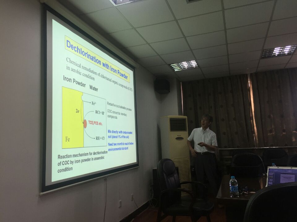 报告中,井上千弘教授介绍了基于特殊选择性的植物吸收重金属、化学和电化学技术,从机理和防治技术两方面分别阐述了蕨类植物的筛选、重金属吸收的机理,以及电化学和细菌在重金属污染治理方面的精彩工作,展现了井上教授课题组近几年在土壤污染物治理领域取得的丰硕成果。针对报告内容,与会师生踊跃提问,与井上教授进行热烈交流。会后,井上教授与理学院教师就科研合作等进行了探讨。