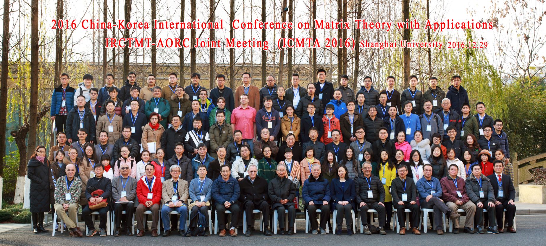2016年12月28-31日,由上海大学主办的"2016 China-Korea International Conference on Matrix Theory with Applications——IRCTMT-AORC Joint Meeting (2016中-韩矩阵论及其应用国际会议)"在上海大学乐乎新楼隆重召开。来自中国、美国、俄罗斯、加拿大、澳大利亚、印度、新加坡、韩国、日本、巴西、科威特、中国台湾和香港等13个国家和地区的150余位专家学者出席大会。