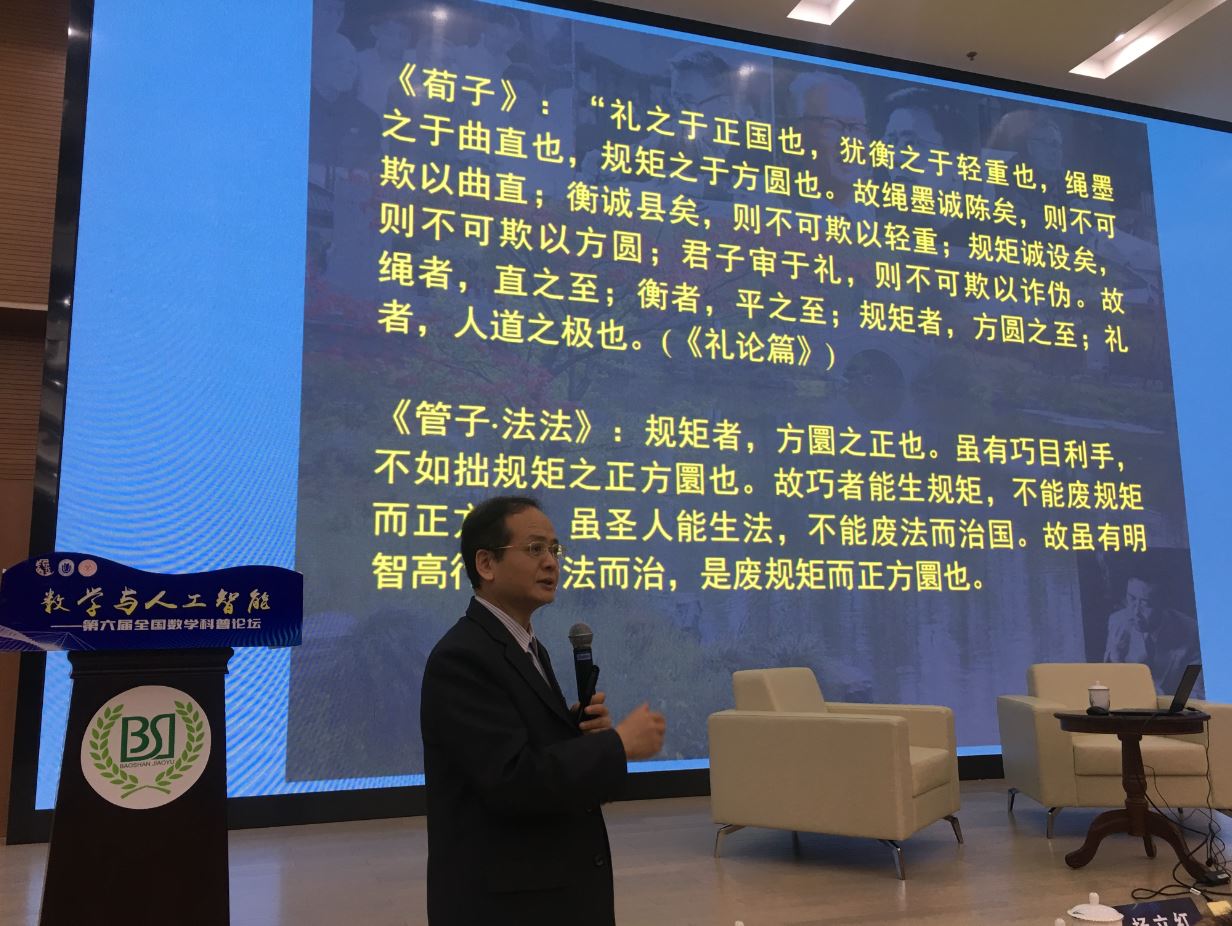 开幕式由上海大学数学系主任王卿文教授主持,上海市教委倪闽景副主任、全国政协委员、中科院院士、中国科学院数学与系统科学研究院周向宇研究员、上海市行知中学严卫东副校长、宝山区政府陈筱洁副区长、上海大学聂清副校长分别在开幕式上致辞。周向宇院士指出:科学知识体系是现代物质文明的基础,数学是推动社会发展的强大动力,本次论坛的主题"数学与人工智能"正是切中时代的脉搏,对激发同学们的创新意识和对数学的兴趣产生重要的作用。倪闽景副主任在致辞中强调指出:本次科普论坛必将对我们的学校教育,乃至上海市的基础教育产生积极而深远的影响。上海大学聂清副校长简要介绍了上海大学、上海大学数学系及上海大学数学科学实践工作站近年来的发展情况,并对本次大会的主题进行了精彩的阐述。