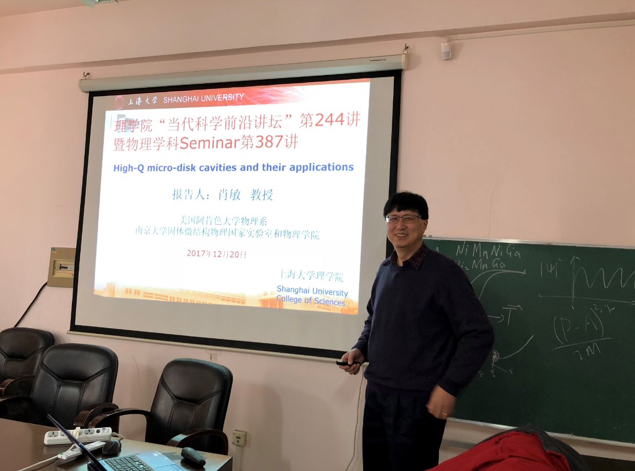 2017年12月20日上午,应物理系杨希华教授的邀请,美国阿肯色大学物理系肖敏教授在校本部G309作了题为"高品质微腔及其应用"的学术报告,物理系师生40余人参加报告。