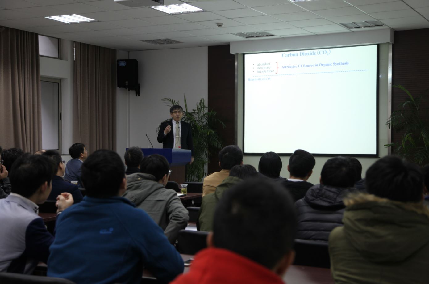 11月21日,日本北海道大学 (Hokkaido University, Japan) 的Yoshihiro Sato(佐藤美洋)教授对理学院化学系进行了学术访问,并做了题为 "Utilization of CO2 as a C1 Building Block in Organic Synthesis" 的学术报告。该报告是理学院"当代科学前沿讲坛"第242讲、"今日化学"学术报告第201讲,报告由化学系主任许斌教授主持,系党总支书记陈雅丽教授、曹卫国教授、吴小余教授等50多名师生参加了活动。